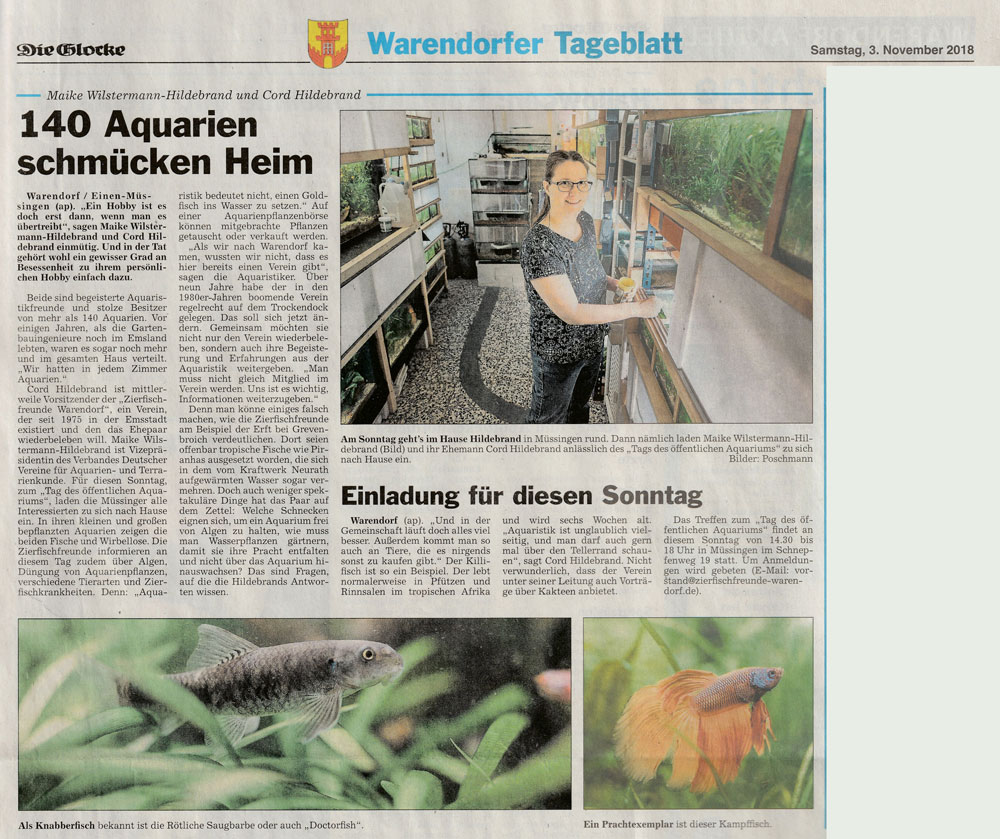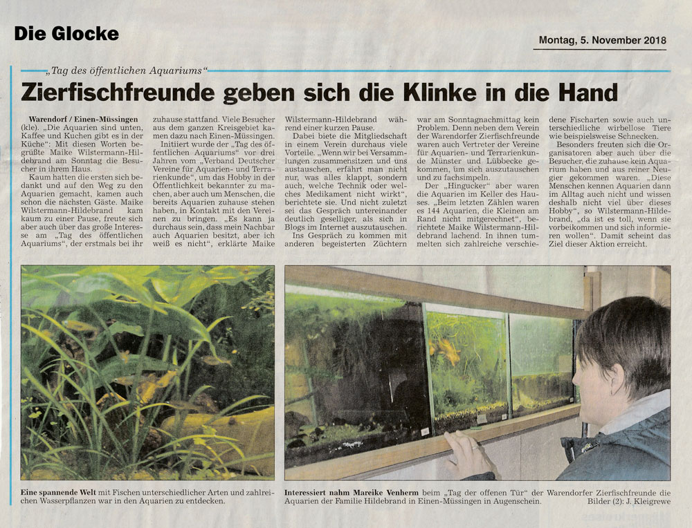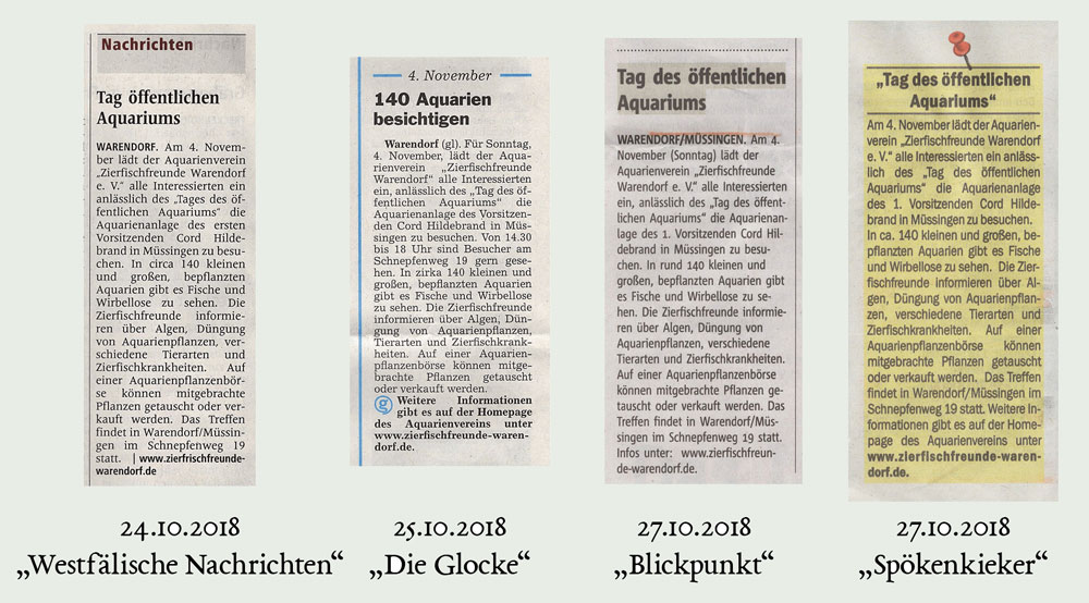 Bei der Presse stieß der "Tag des öffentlichen Aquariums" auf großes Interesse und sowohl "Die Glocke" als auch die "Westfälischen Nachrichten" besuchten uns bereits im Vorfeld und berichteten