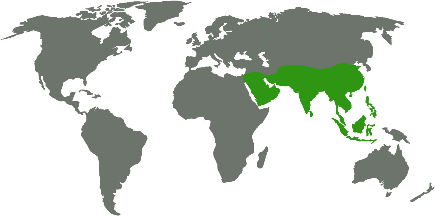 Verbreitungsgebiet: Indien, Bangladesch, Thailand, Myanmar, Vietnam, Malaysia, Borneo